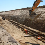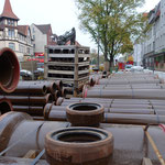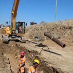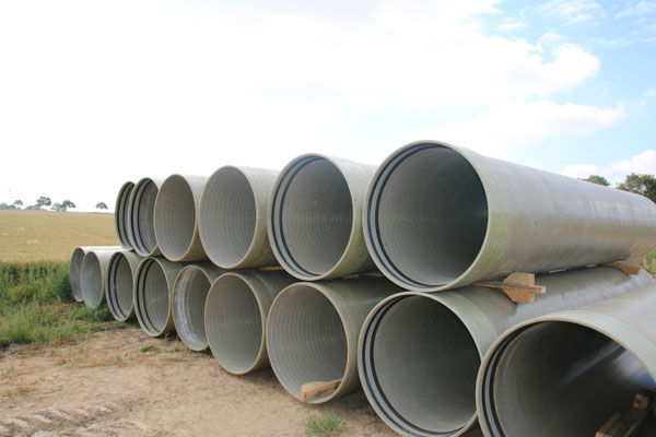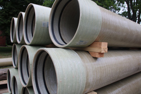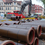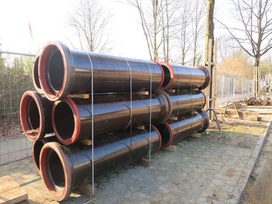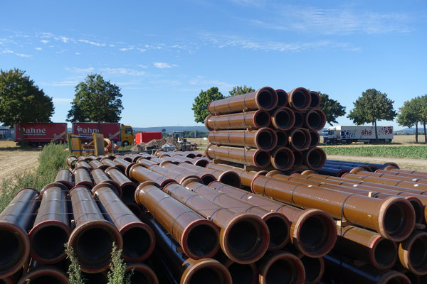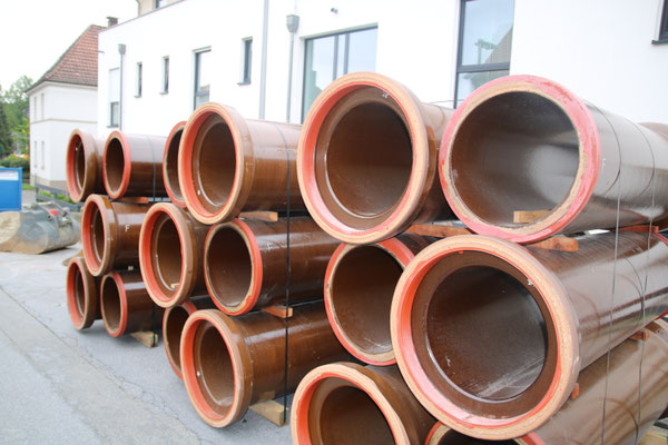 Insgesamt werden ca. 2400 m Steinzeugrohre DN 200 und 500 m Steinzeugrohre DN 250 verlegt, zzgl. Formteilen. Verwendet werden Hochlastrohre.