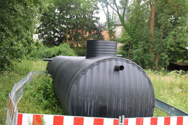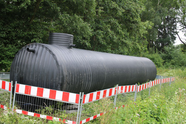 1 PE-HD Tank DN 3000 in Baulänge 15,0 m mit 100 Kubikmeter Volumen, einschließlich Leckageüberwachung gemäß WGG §19 und zwei Domschächten